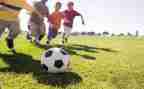 在裁判员的哨令下,双方开始争夺足球,你踢我扫,竞争激烈。